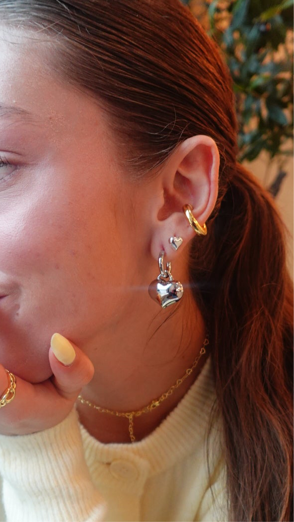 The Cupid Hoops Earrings are crafted from lightweight materials and feature a 14k gold plating. This combination offers both durability and a refined aesthetic, making them suitable for everyday wear. The lightweight design ensures comfort without compromising on style, allowing for extended use without discomfort.